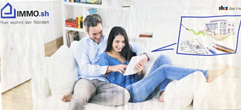 Das junge Paar sitzt erkennbar in einer schnieken modernen Wohnung und hat nichts Besseres zu tun, als sich beim Schleswig-Holsteinischen Zeitungsverlag nach einer neuen Immobilie umzusehen.