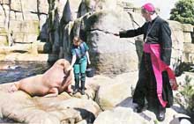 Der Appetit des Tierchens ist erkennbar schon gesegnet. Und wann wird Hamburgs Erzbischof seinem römischen Boss vorschlagen, den Speckklumpen heilig zu sprechen? Etwa zum Sankt Fettkloß.